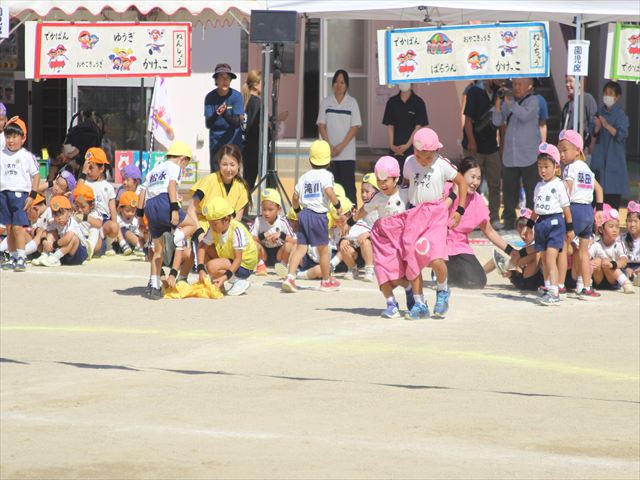 共通 第10回光輪はさみこども園 運動会 2025年10月23日 お天気にも恵まれ、子どもたちも楽しみにしていた運動会がありました乳児部の小さなお友達から幼児部のお友達まで一生懸命頑張りましたよ忍者宣言をしてくれた小頭のお友達↓乳児部のお友達の様子↓幼児部さんの様子↓忍者団対抗デカパンの様子↓お家の人も頑張りました終わりの言葉の様子↓暑い中よく頑張りましたね保護者の皆様、ご参加いただいた皆様も暑い中ありがとうございました 前の日誌2月5日のおやこる~む中止について 保育日誌一覧へ