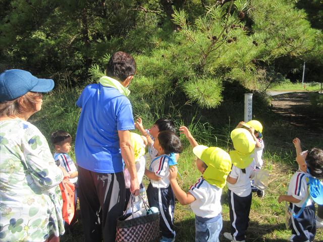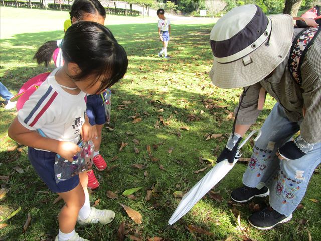 子どもたちは夢中になって、どんぐりや松ぼっくり等たくさん拾っていました