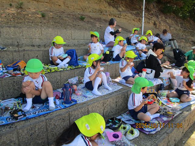 お昼はおじいちゃん、おばあちゃんたちと一緒にお弁当