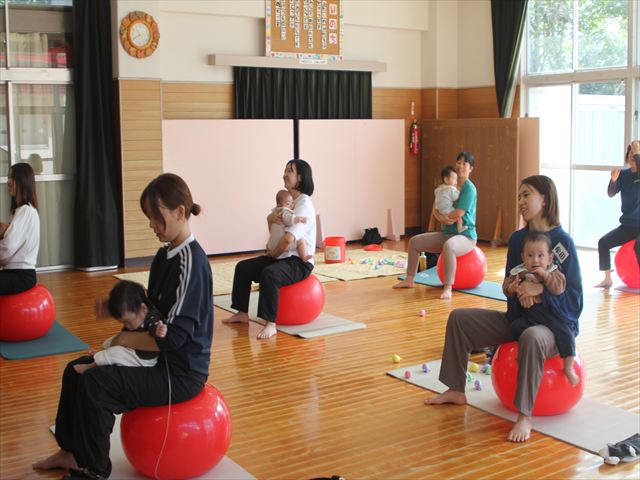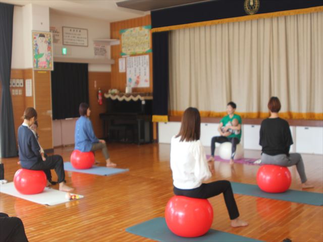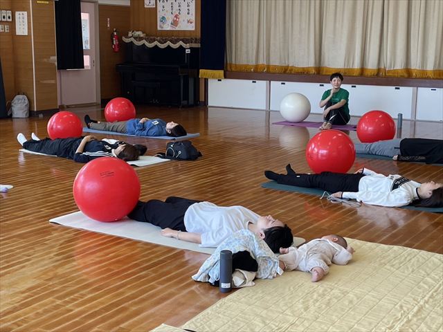 今回は、前年度好評だった「バランスボールやってみよう!」